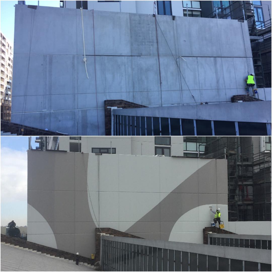 Before and after. Transferring a drawing on a piece of A4 paper on to the wall was a challenge but came out great. #ropeaccess #petzl #abseiling #safeaccess #greatteam